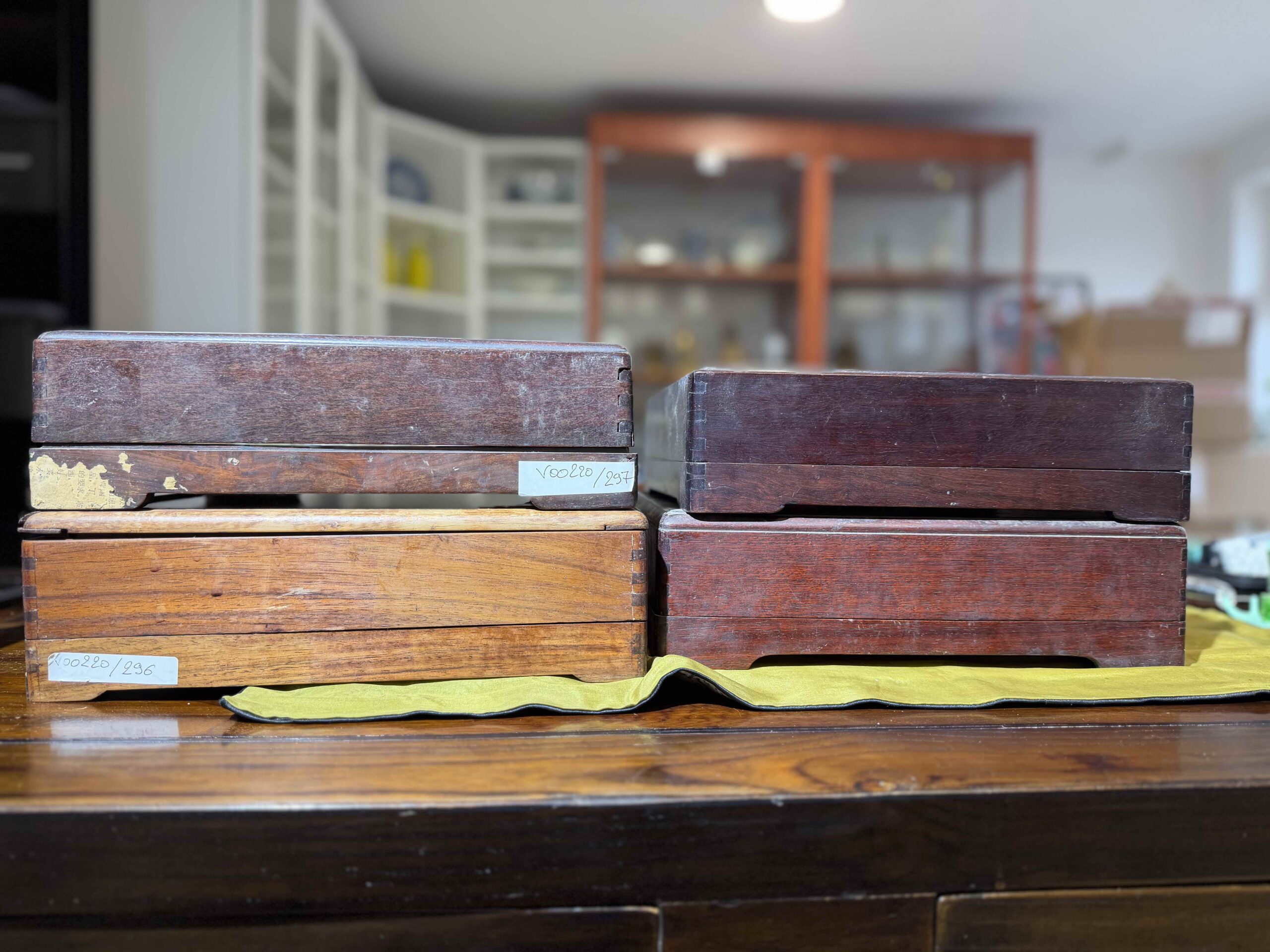 A group of three traditional Chinese wooden boxes, each with aged patina and natural wear from time. Suitable for storage, decoration, or as collectible pieces reflecting classic Chinese craftsmanship.